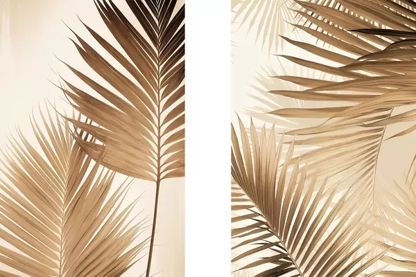 Poster Hojas de palmera en tonos marrones, fondo neutro, estilo minimalista, iluminación natural, ambiente tropical. Nr d00880