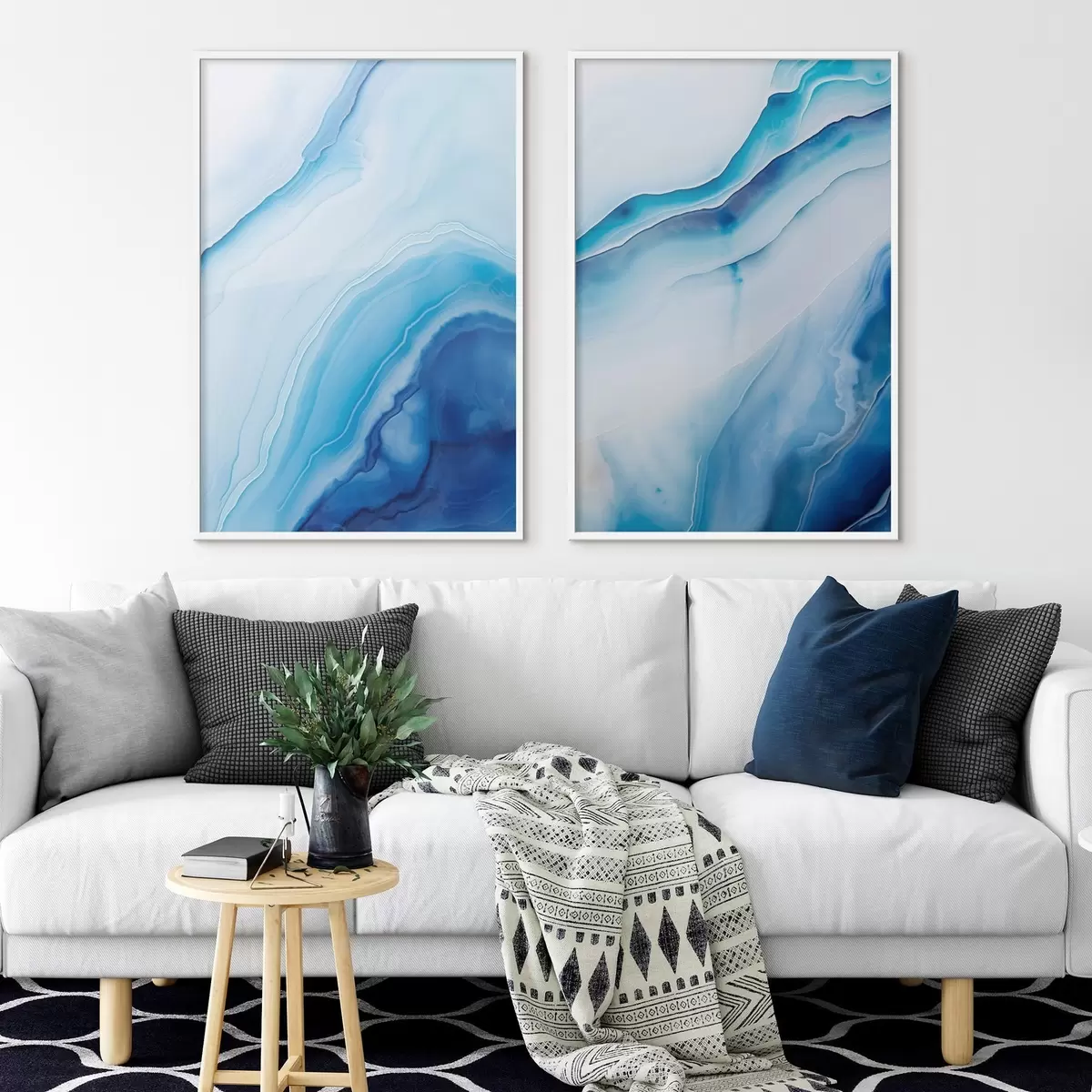Poster Estampado abstracto de ágata azul y blanca, líneas y degradados en espiral, textura suave, arte moderno, minimalista Nr d00888