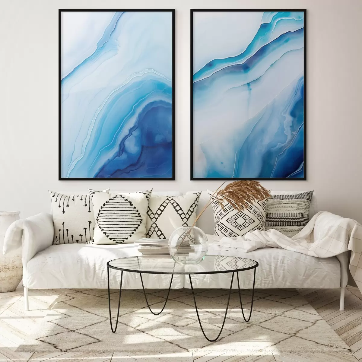 Poster Estampado abstracto de ágata azul y blanca, líneas y degradados en espiral, textura suave, arte moderno, minimalista d00888