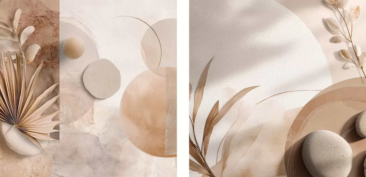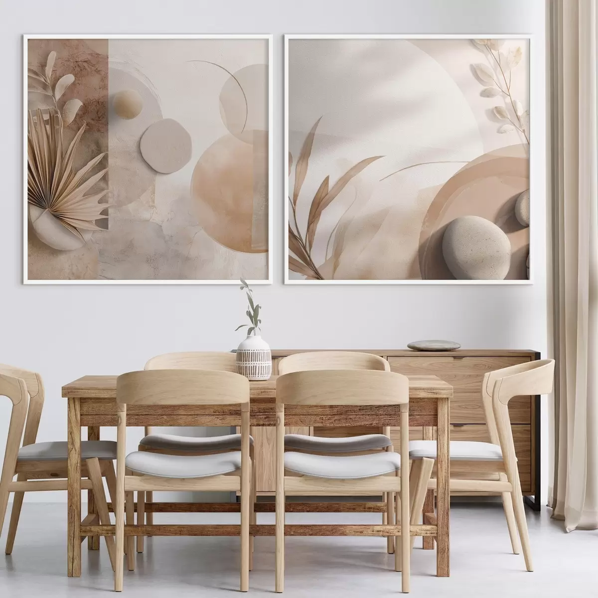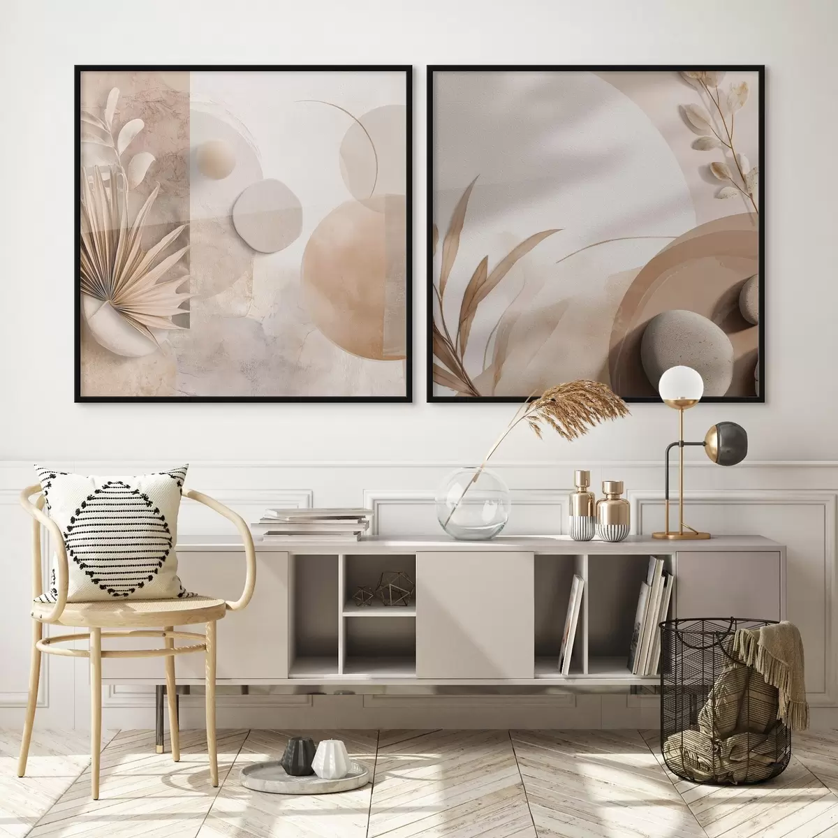 Poster Dos lienzos con hojas secas y formas texturizadas Nr d00893