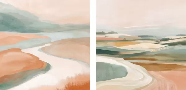 Poster Colinas abstractas y río en paleta pastel Nr d00896