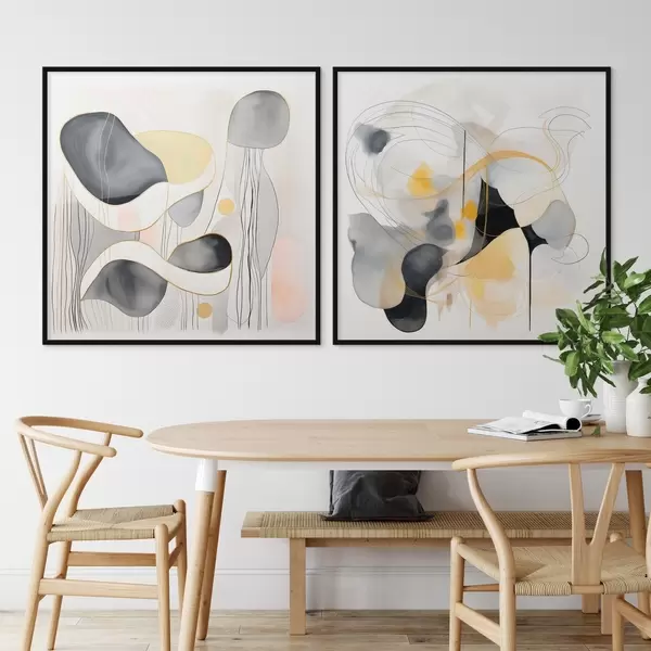 Poster Monocromo y acento amarillo en estilo abstracto Nr d00905