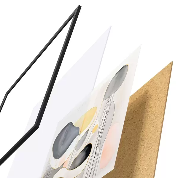 El póster consta de marco, plexiglás, imagen impresa y soporte de aglomerado. El póster puede colgarse inmediatamente en la pared gracias a los soportes de la parte posterior.