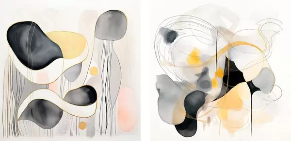 Poster Monocromo y acento amarillo en estilo abstracto Nr d00905