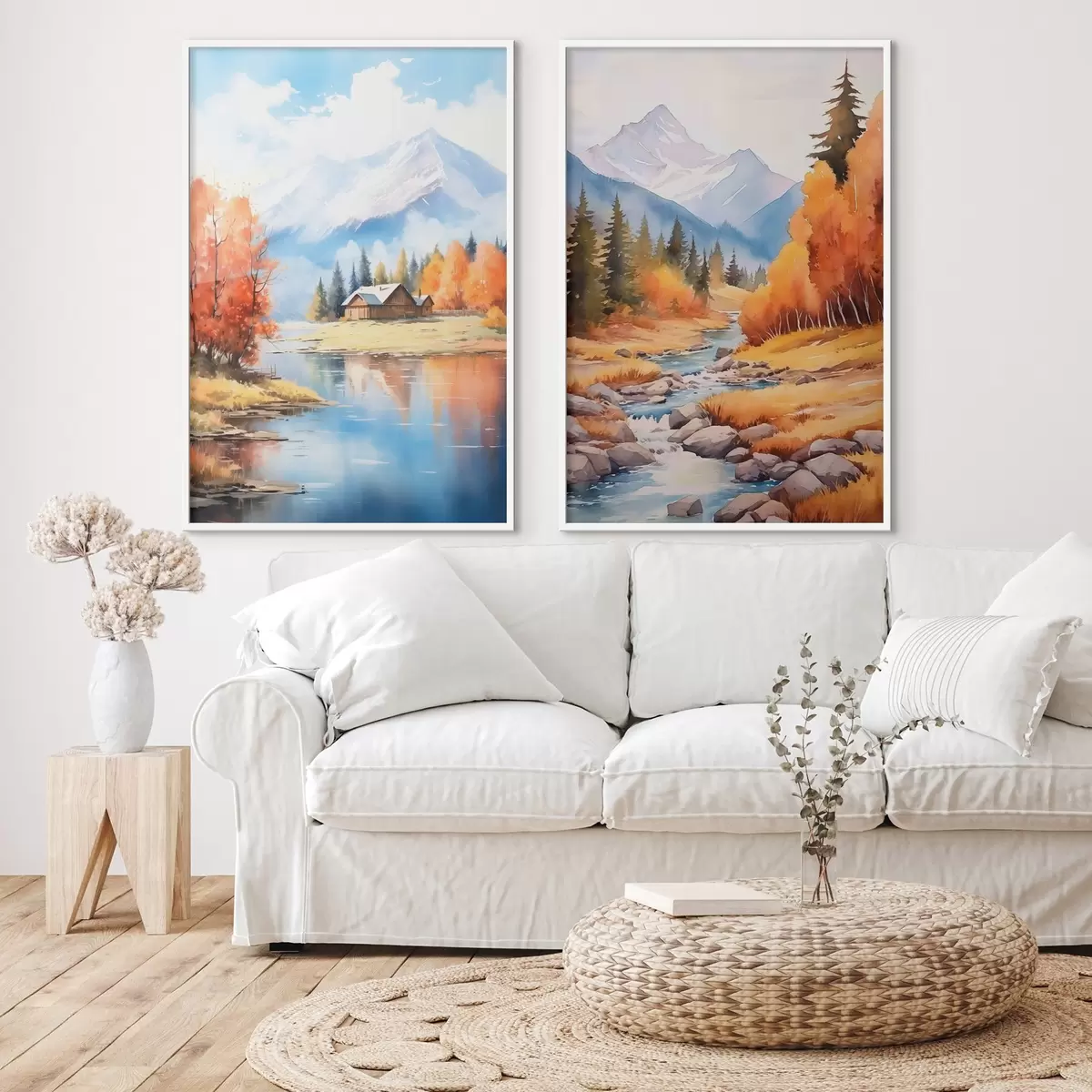 Poster Paisaje montañoso otoñal con lago y río Nr d00929