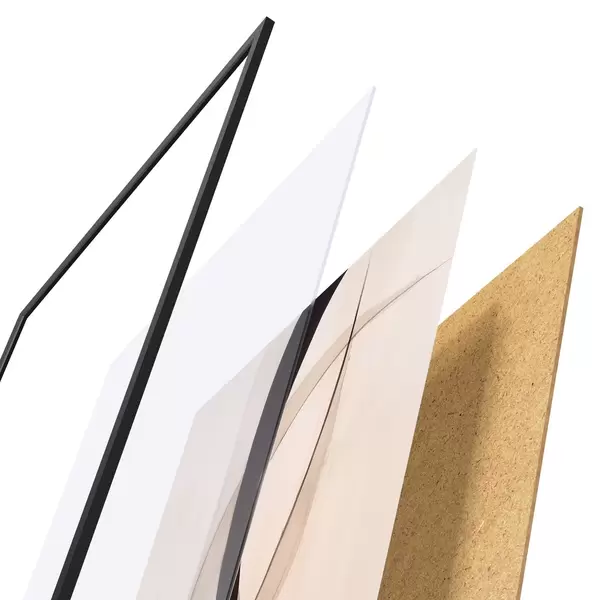 El póster consta de marco, plexiglás, imagen impresa y soporte de aglomerado. El póster puede colgarse inmediatamente en la pared gracias a los soportes de la parte posterior.