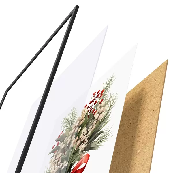 El póster consta de marco, plexiglás, imagen impresa y soporte de aglomerado. El póster puede colgarse inmediatamente en la pared gracias a los soportes de la parte posterior.