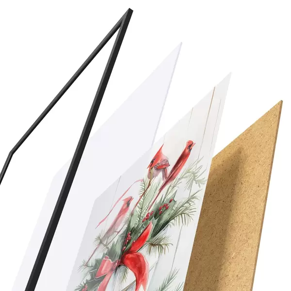 El póster consta de marco, plexiglás, imagen impresa y soporte de aglomerado. El póster puede colgarse inmediatamente en la pared gracias a los soportes de la parte posterior.