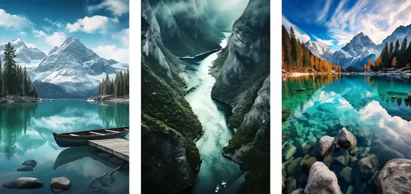 Poster Lagos alpinos y vistas al fiordo en frescos tonos verde azulado. Nr d00961