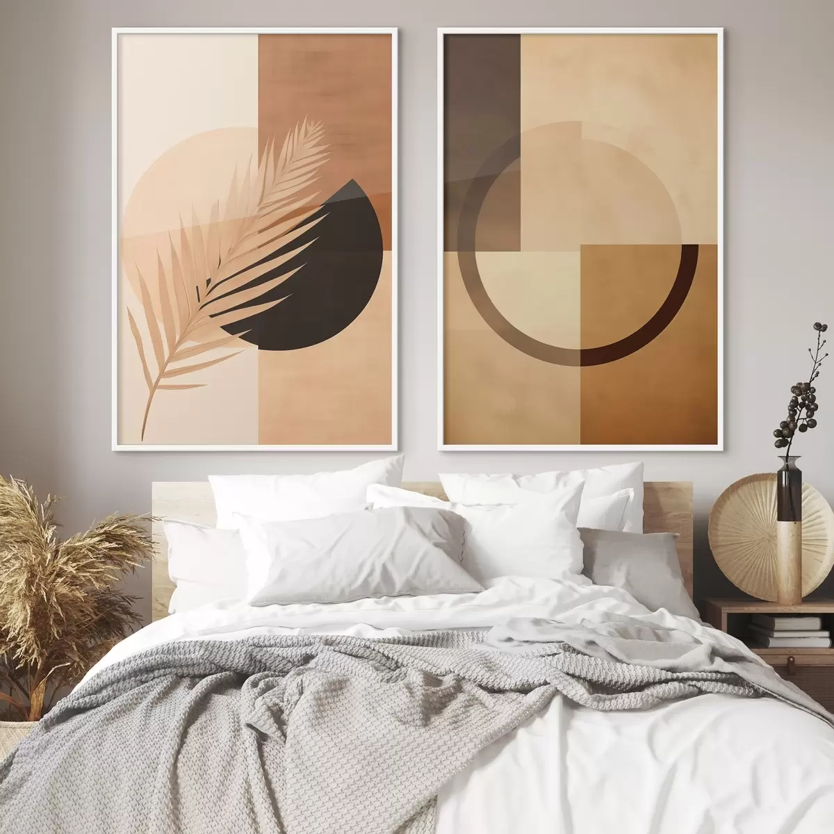 Poster Geometría en terracota y beige con motivo de hojas de palmera. Nr d00968