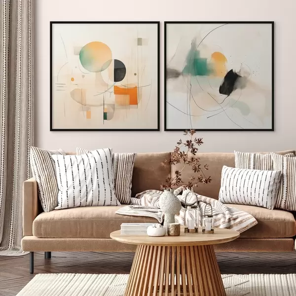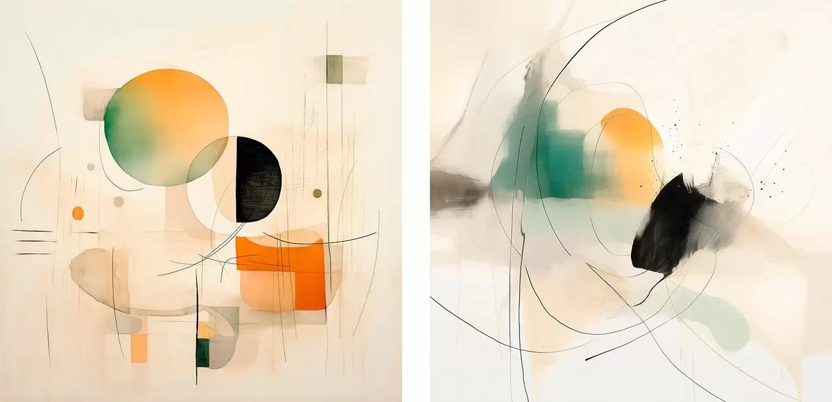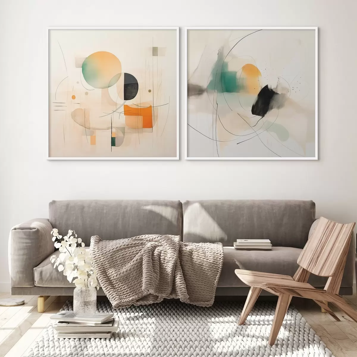 Poster Díptico abstracto con formas circulares y líneas dinámicas. Nr d00981