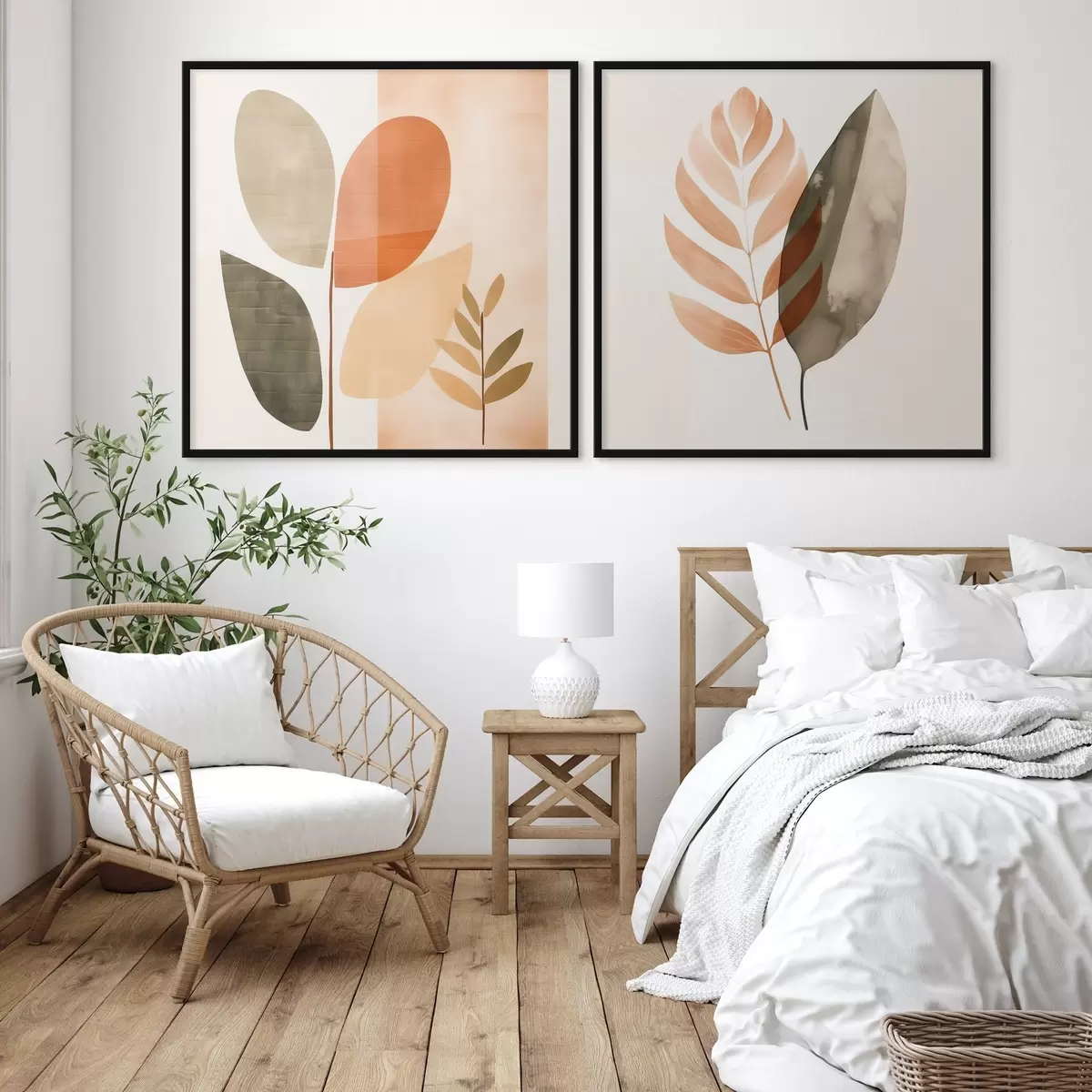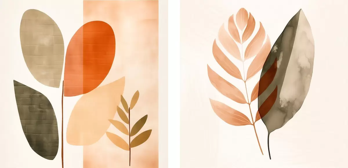 Poster Díptico con motivos botánicos en una paleta de colores pastel. Nr d00983