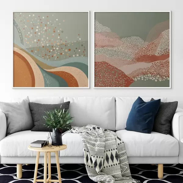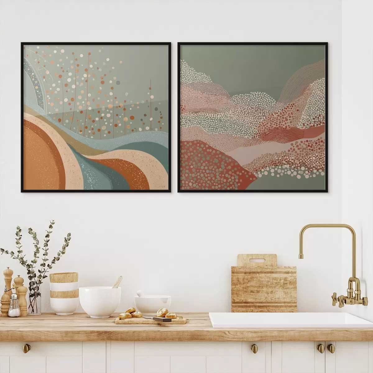 Poster Paisaje abstracto en dos partes con elementos punteados y ondulados. Nr d00987