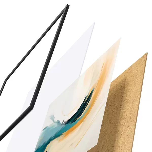 El póster consta de marco, plexiglás, imagen impresa y soporte de aglomerado. El póster puede colgarse inmediatamente en la pared gracias a los soportes de la parte posterior.