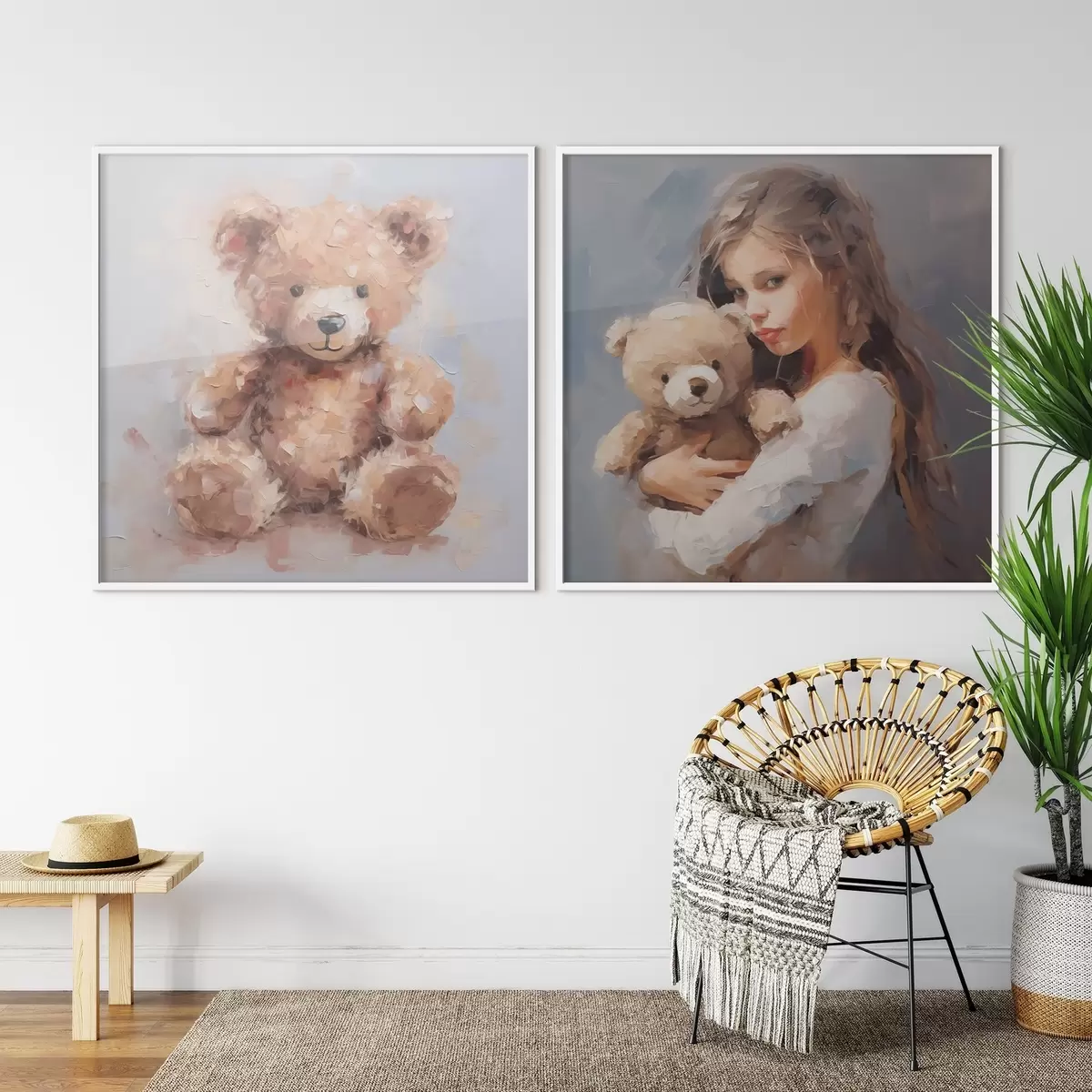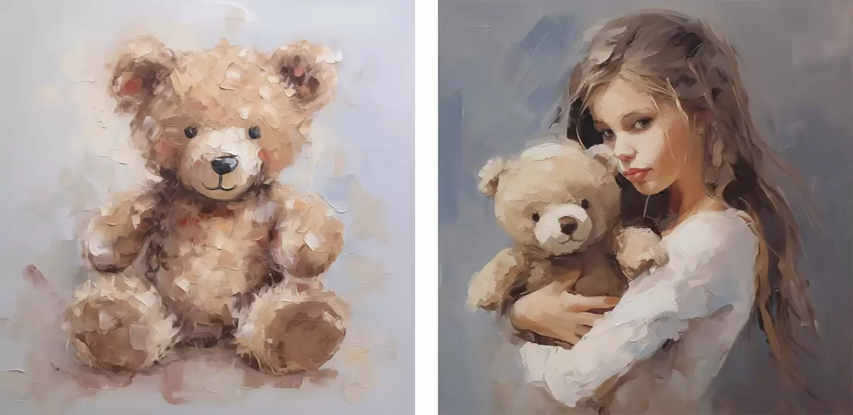 Poster Niña con un oso de peluche, pintura de imitación Nr d01029