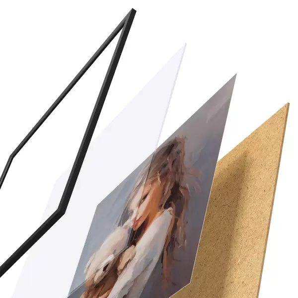 El póster consta de marco, plexiglás, imagen impresa y soporte de aglomerado. El póster puede colgarse inmediatamente en la pared gracias a los soportes de la parte posterior.