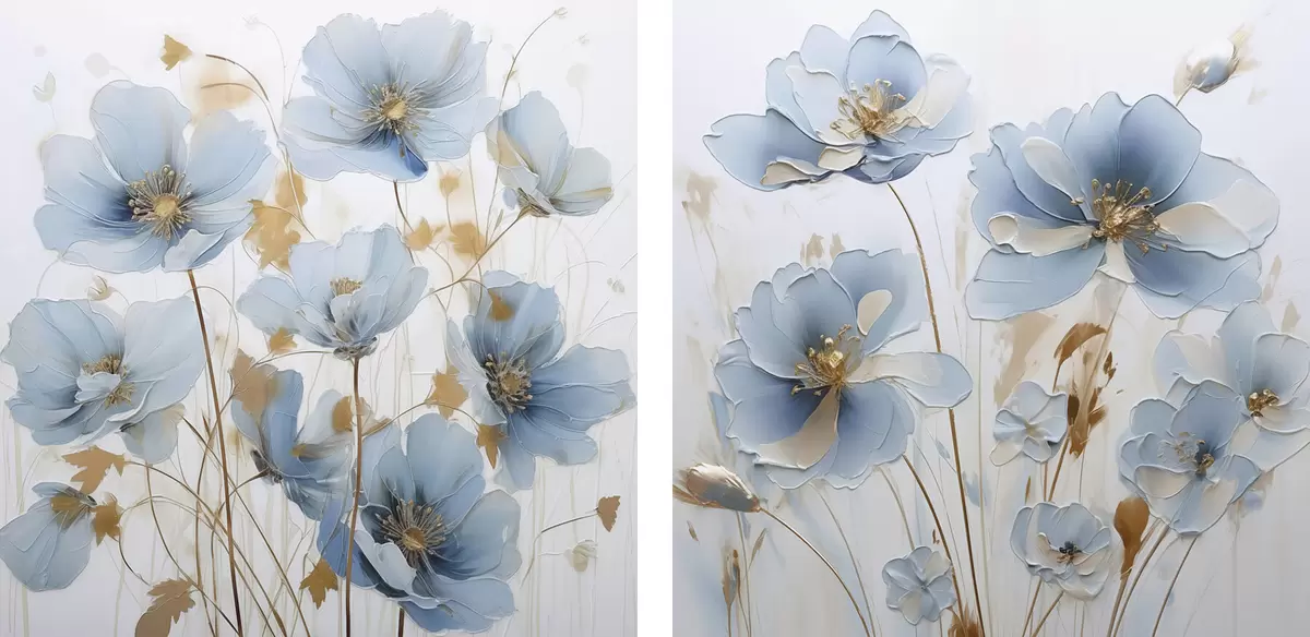 Hay tres tipos de material disponibles para pedidos: Lienzo Económico - material denso y duradero para impresión digital, idéntico al lienzo de pintor, superficie impermeable, reproducción realista de los detalles, material de grano medio. Lienzo Premium - la textura se asemeja a la de un lienzo de pintor (pequeños hilos entrelazados). Reproducción suave y detallada de la imagen sobre una superficie mate. Eco-Premium - tejido 100% algodón de alta calidad. Gracias a las fibras naturales de algodón, el material es duradero y resistente al desgaste. Excelente reproducción del color y el detalle.