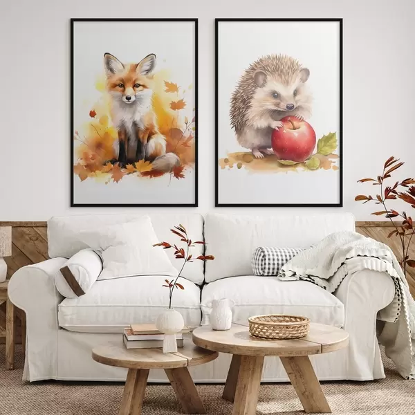 Poster Zorro y erizo, imitación acuarela Nr d01050