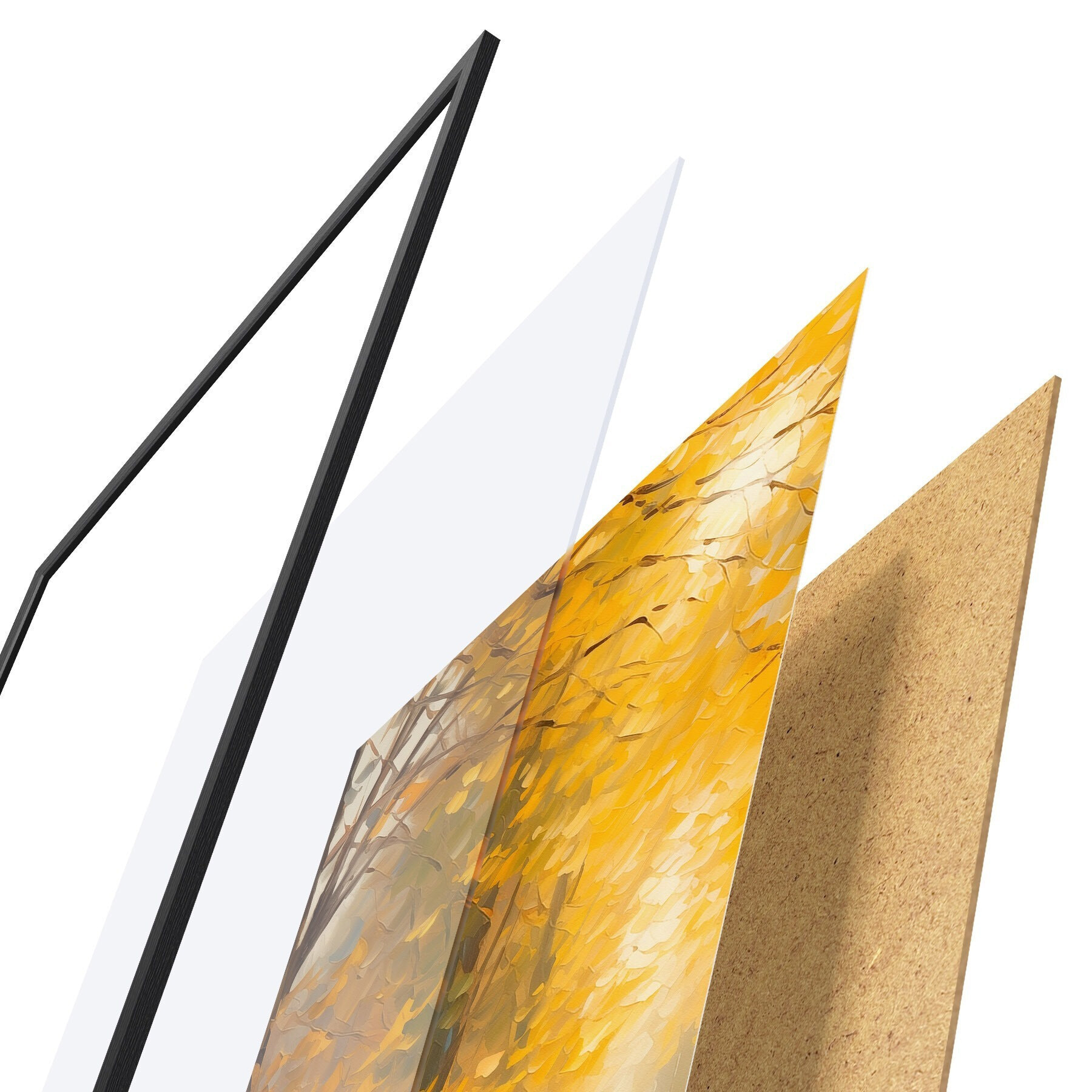 El póster consta de marco, plexiglás, imagen impresa y soporte de aglomerado. El póster puede colgarse inmediatamente en la pared gracias a los soportes de la parte posterior.