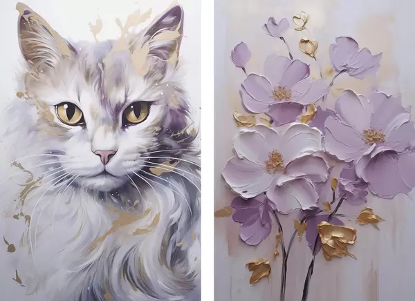 Poster Flores abstractas y un gato Nr d01056