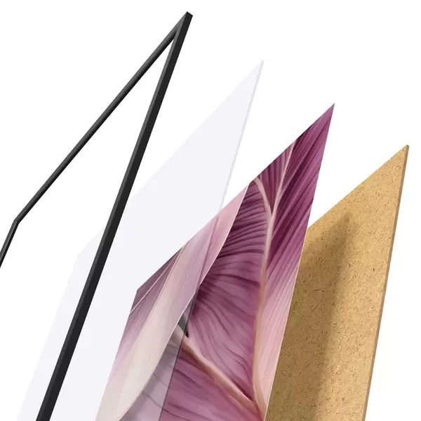 El póster consta de marco, plexiglás, imagen impresa y soporte de aglomerado. El póster puede colgarse inmediatamente en la pared gracias a los soportes de la parte posterior.