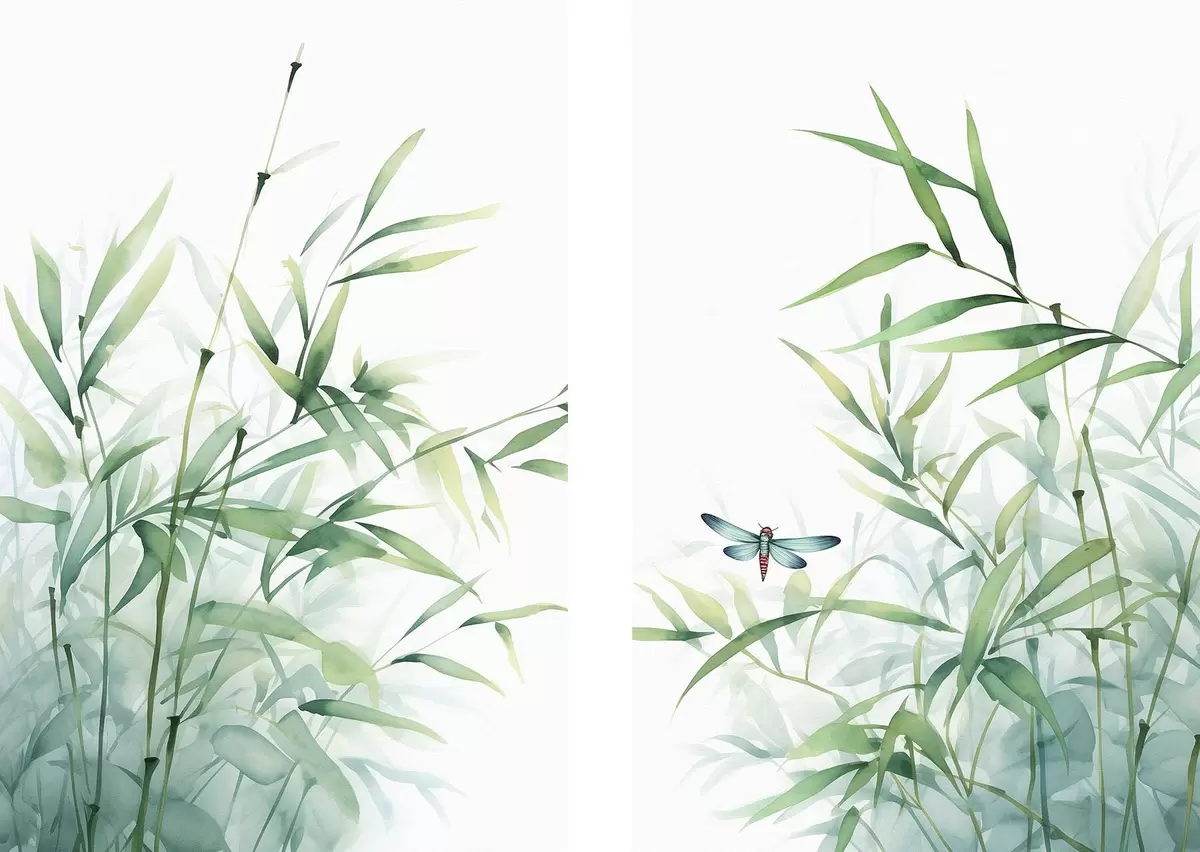 Poster Plantas de bambú, imitación acuarela Nr d01062