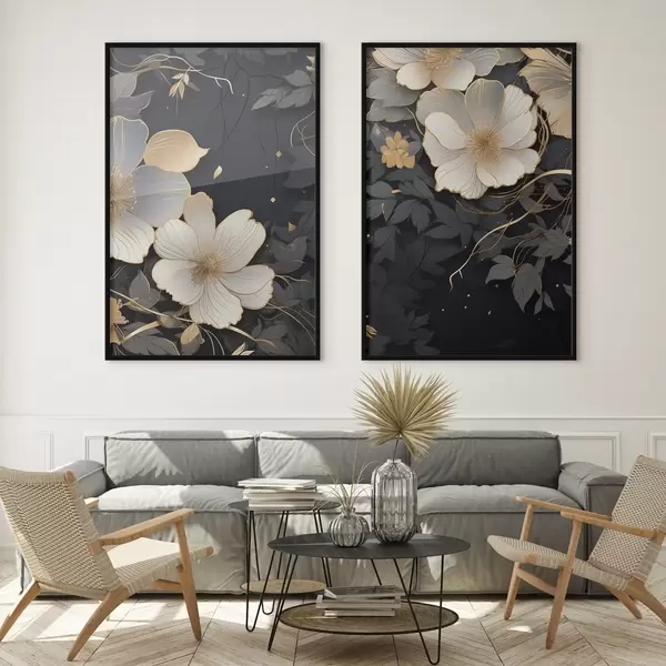Poster Grandes flores abstractas sobre fondo oscuro d01066