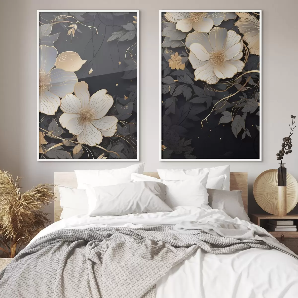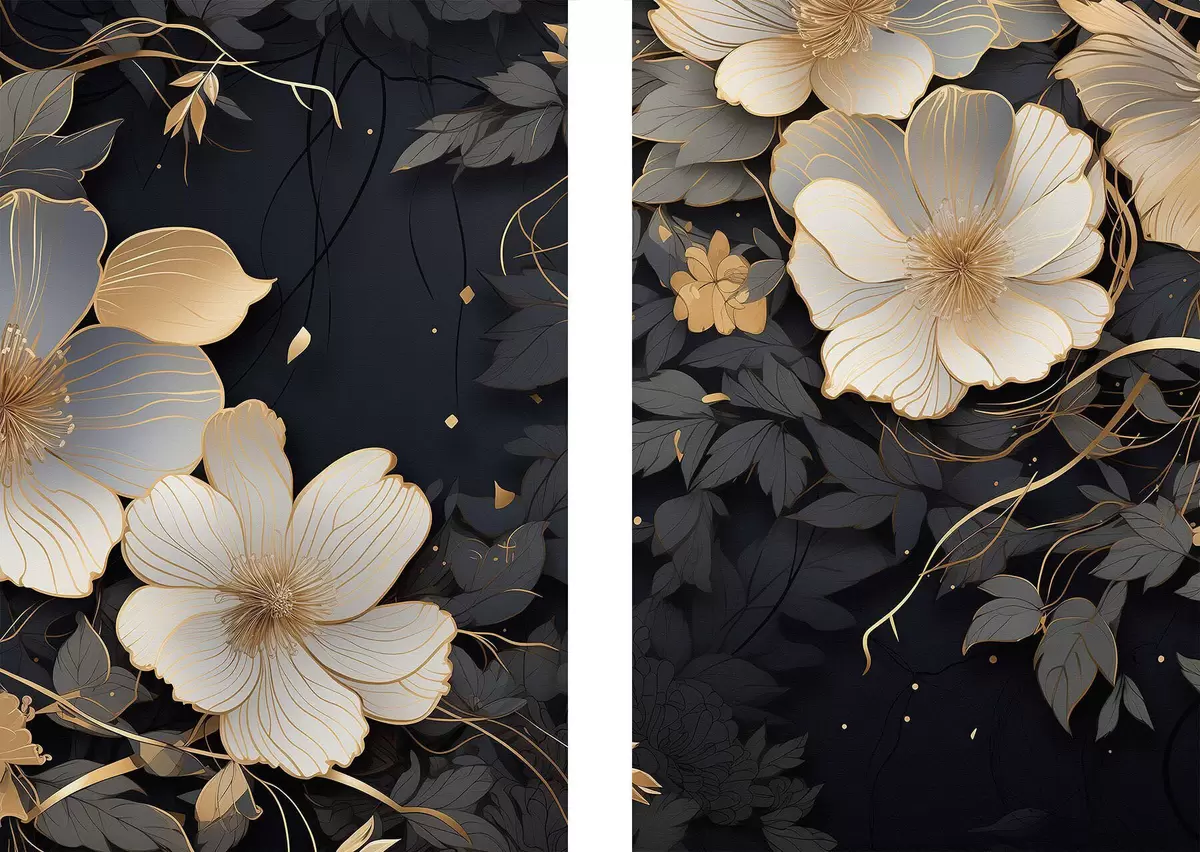Poster Grandes flores abstractas sobre fondo oscuro d01066
