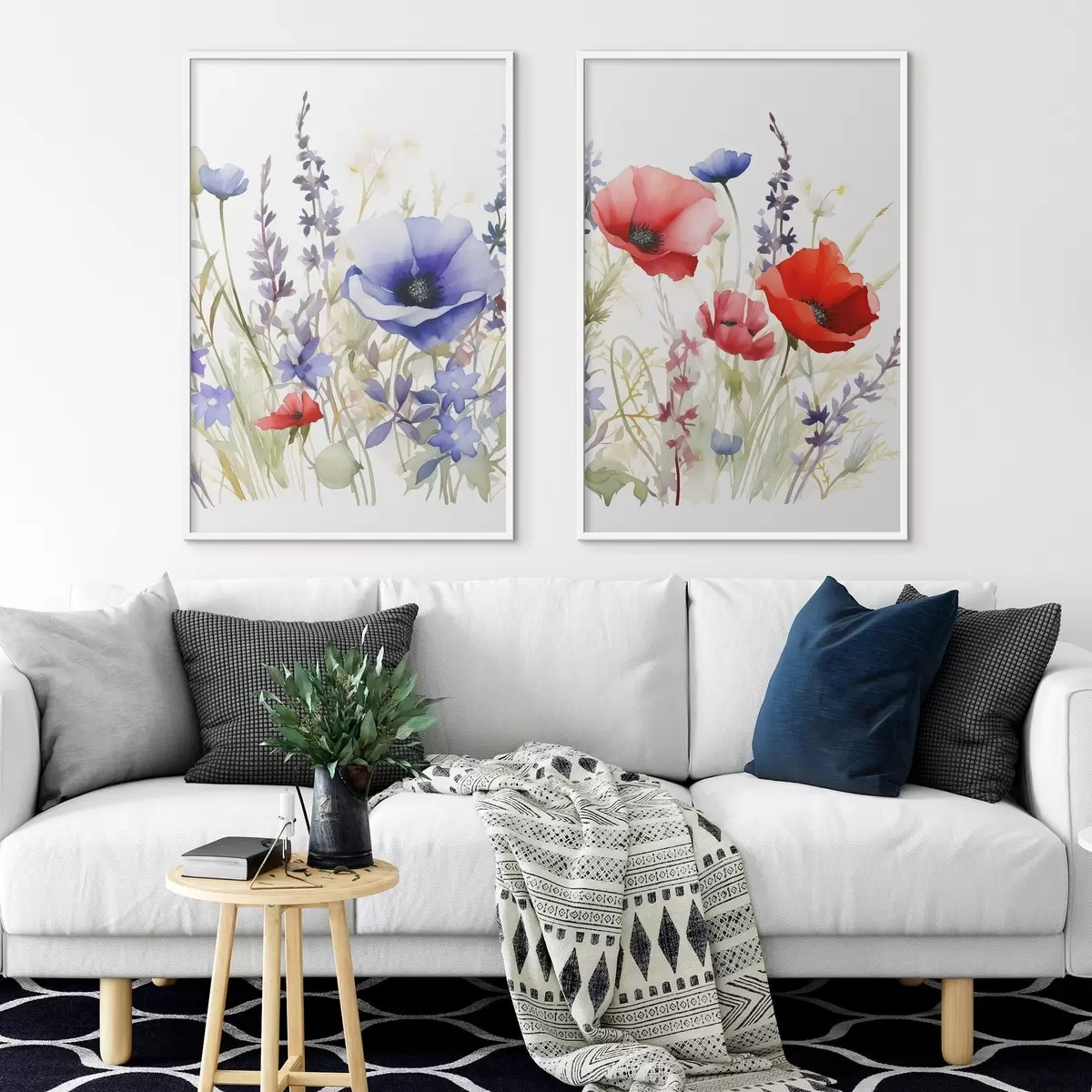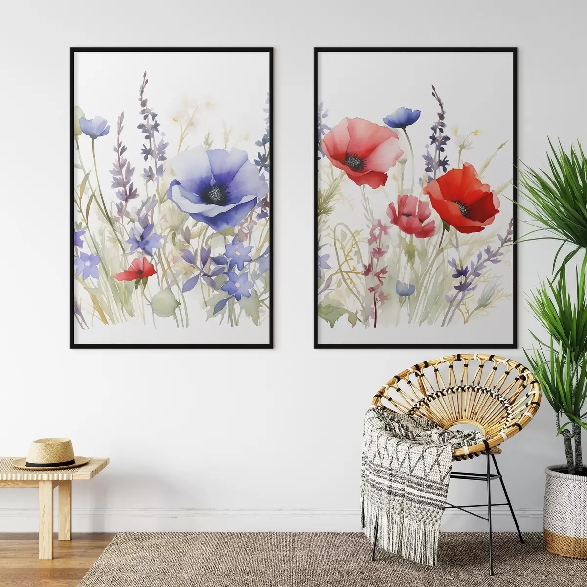 Poster Amapolas en un campo, efecto acuarela Nr d01067