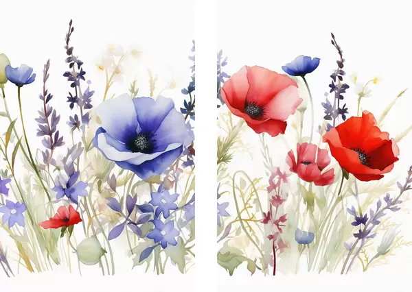 Poster Amapolas en un campo, efecto acuarela Nr d01067