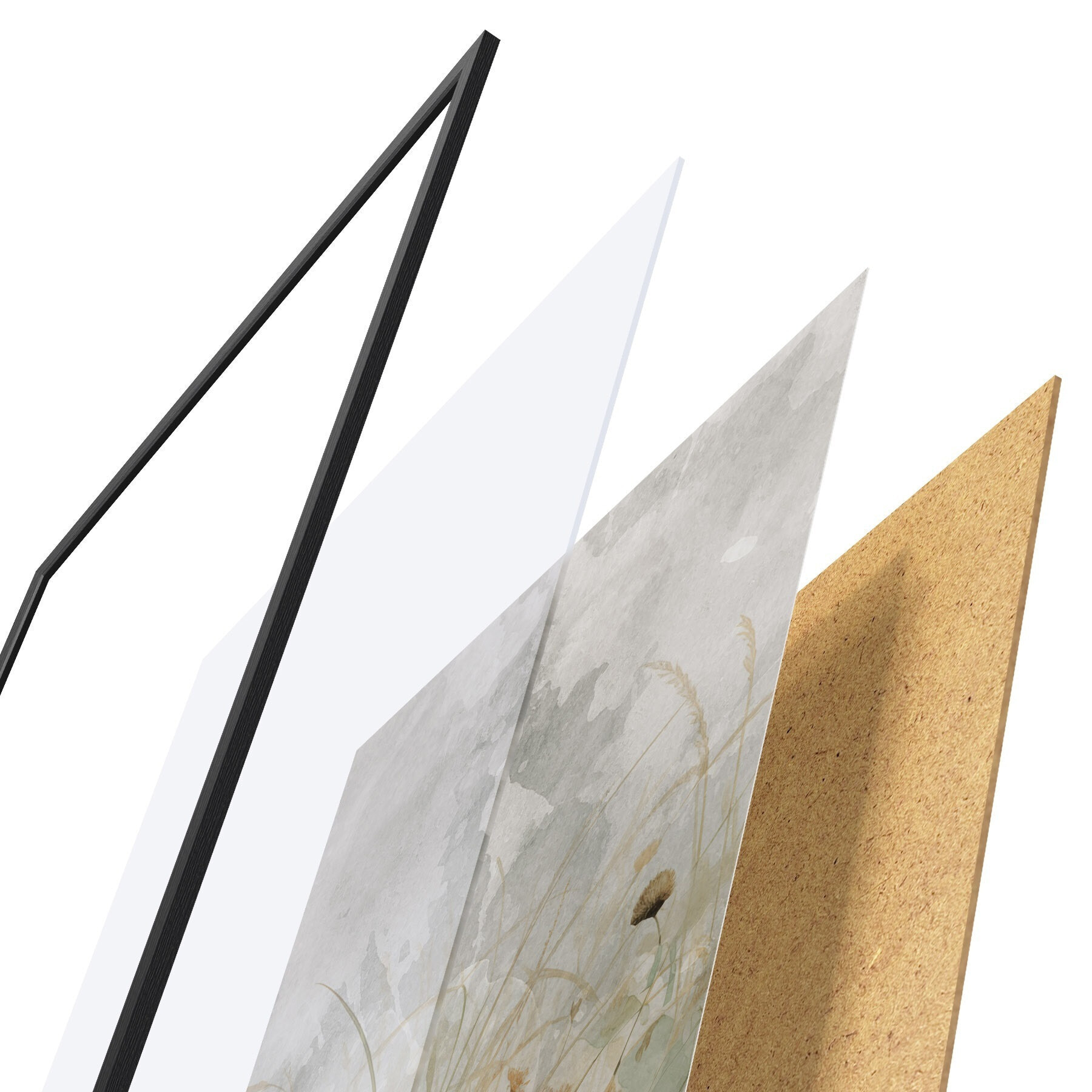 El póster consta de marco, plexiglás, imagen impresa y soporte de aglomerado. El póster puede colgarse inmediatamente en la pared gracias a los soportes de la parte posterior.