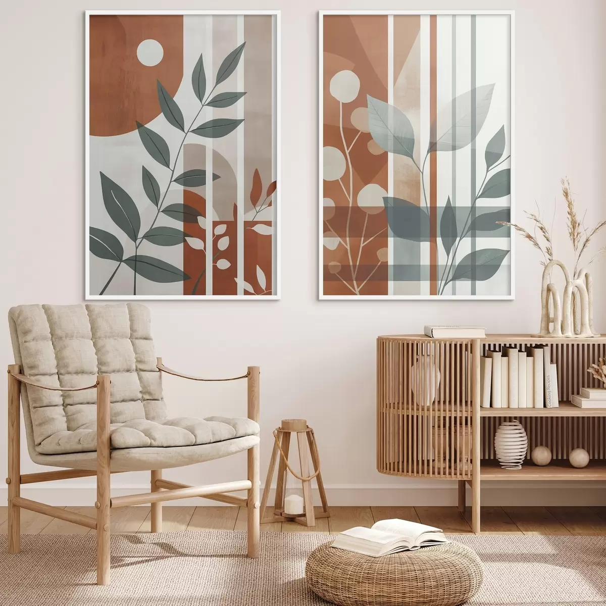 Poster Abstracción con ramas de hojas d01074