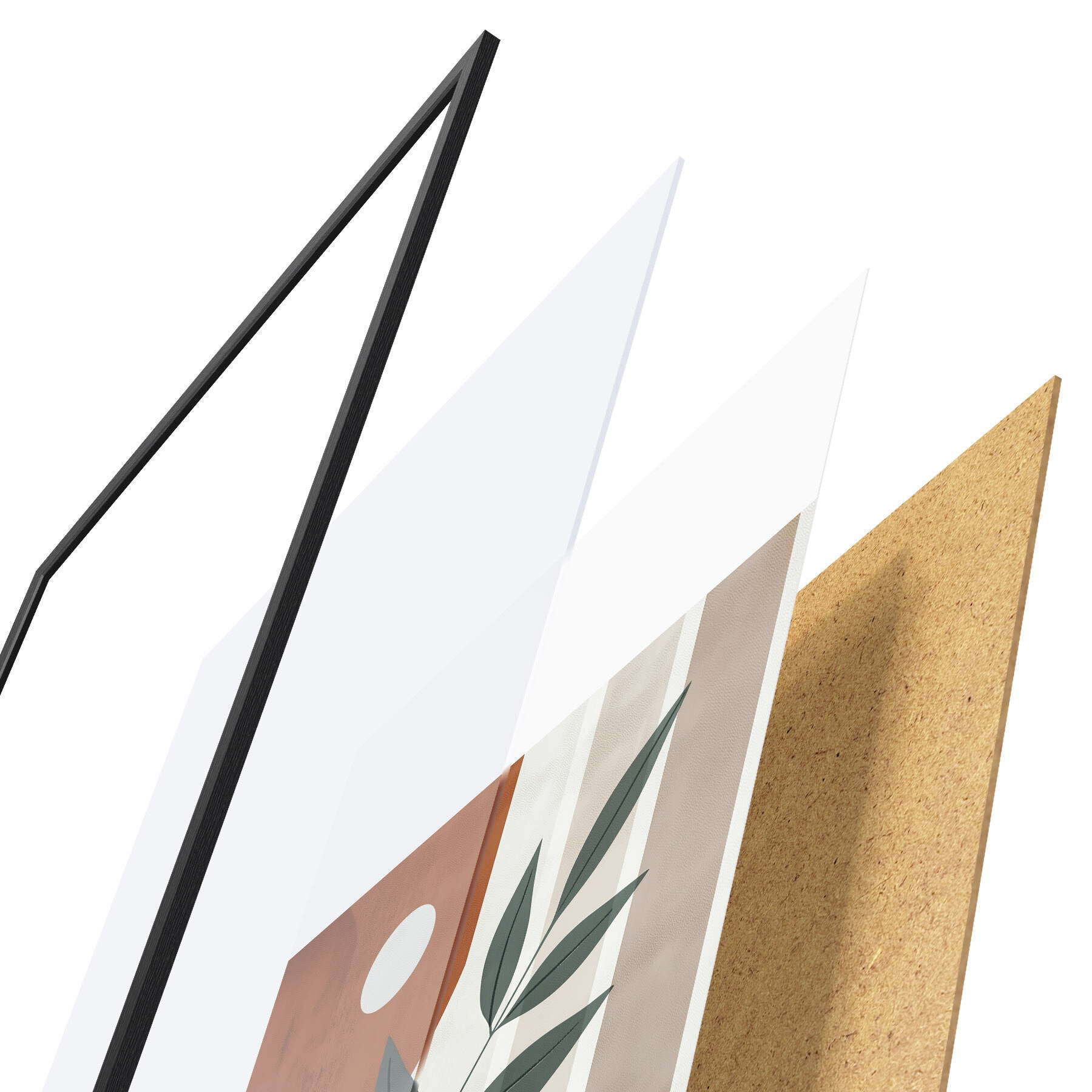 El póster consta de marco, plexiglás, imagen impresa y soporte de aglomerado. El póster puede colgarse inmediatamente en la pared gracias a los soportes de la parte posterior.