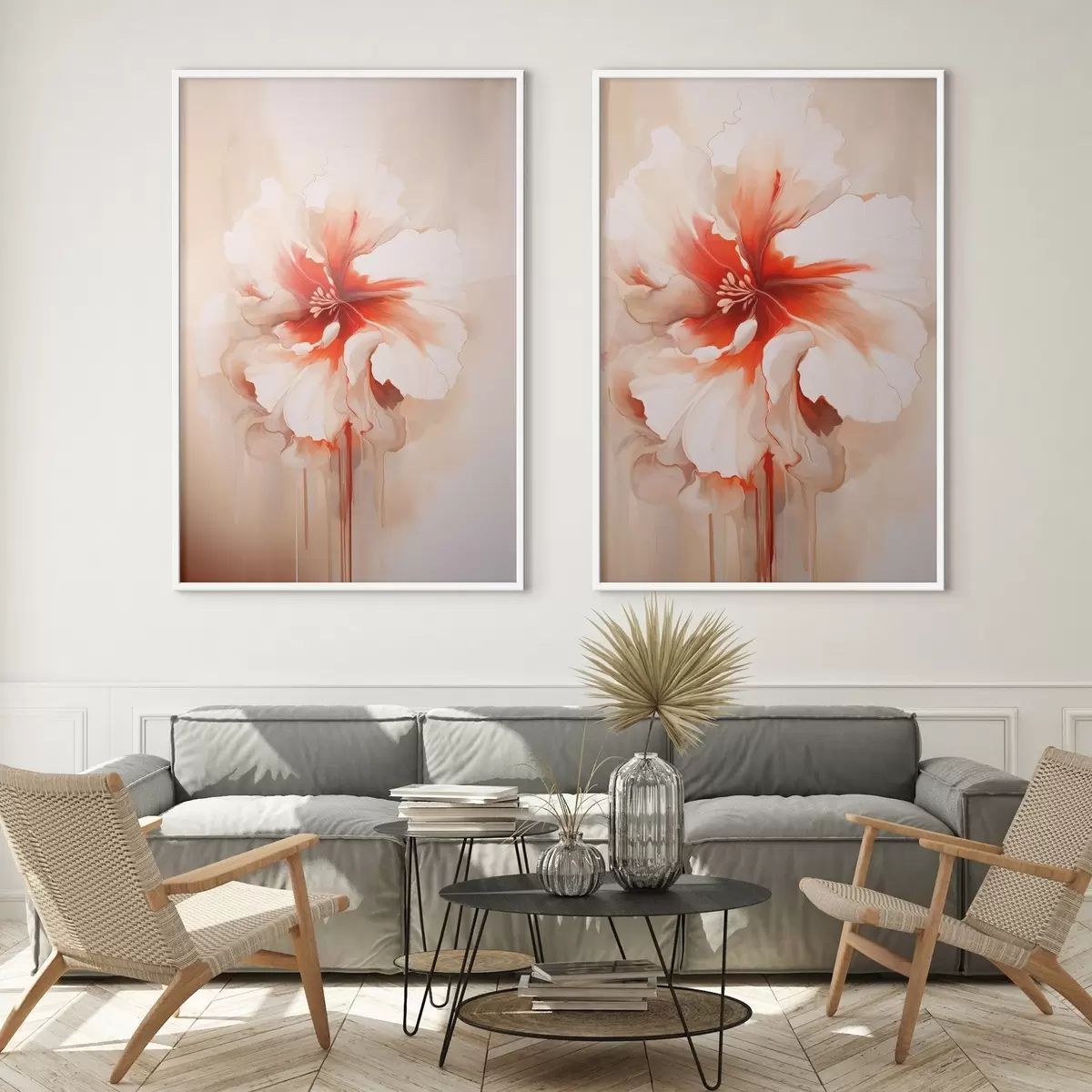 Poster Pétalos de coral blanco sobre un fondo abstracto, composición tranquila. d01089