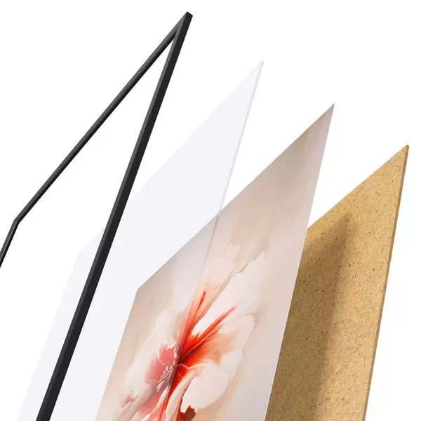 El póster consta de marco, plexiglás, imagen impresa y soporte de aglomerado. El póster puede colgarse inmediatamente en la pared gracias a los soportes de la parte posterior.