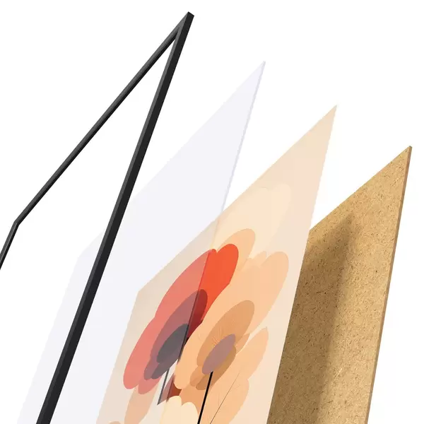 El póster consta de marco, plexiglás, imagen impresa y soporte de aglomerado. El póster puede colgarse inmediatamente en la pared gracias a los soportes de la parte posterior.