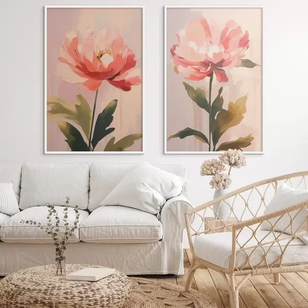 Poster Peonías en tonos pastel sobre tallos altos en cálidos tonos rosados. Nr d01093