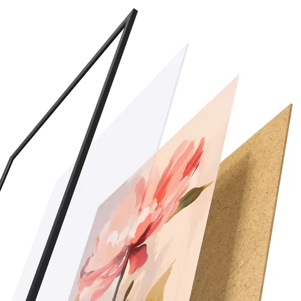 El póster consta de marco, plexiglás, imagen impresa y soporte de aglomerado. El póster puede colgarse inmediatamente en la pared gracias a los soportes de la parte posterior.