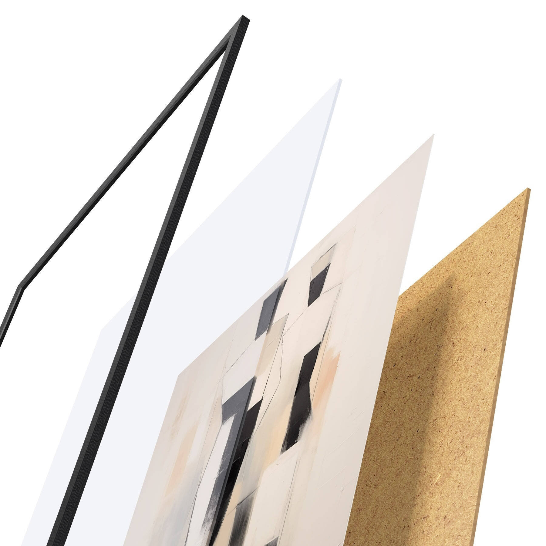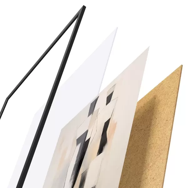 El póster consta de marco, plexiglás, imagen impresa y soporte de aglomerado. El póster puede colgarse inmediatamente en la pared gracias a los soportes de la parte posterior.