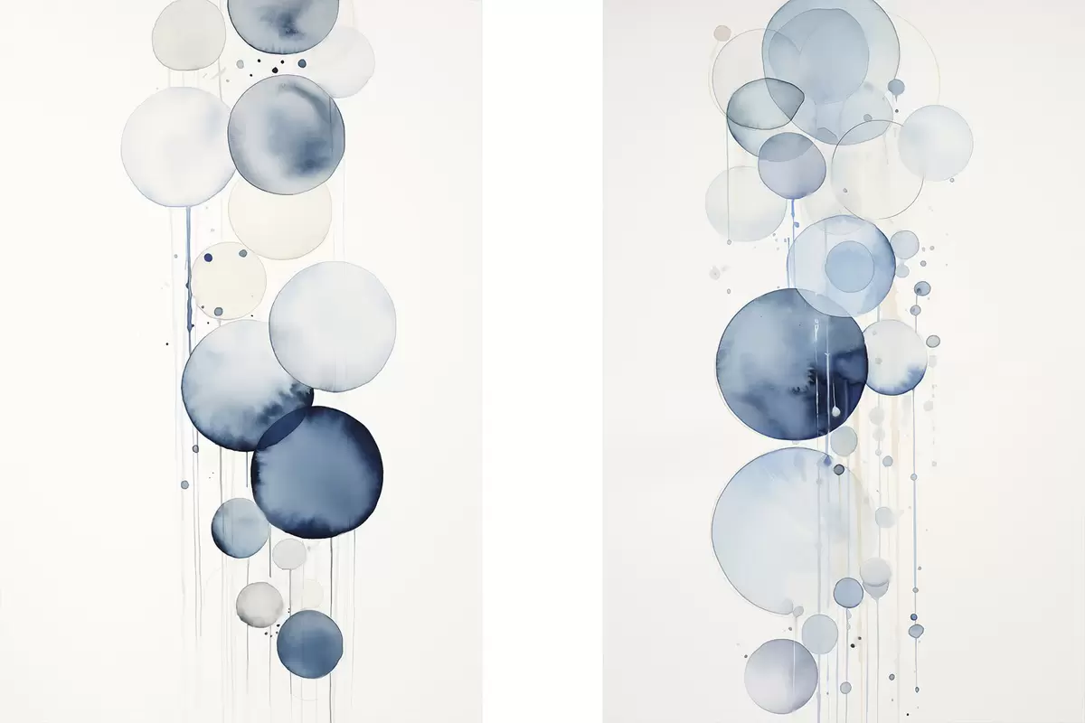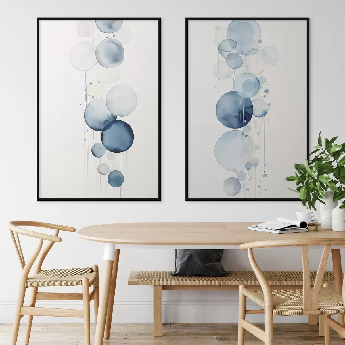 Poster Círculos abstractos con textura azul y blanca en acuarela de diferentes tamaños, sobre fondo blanco. d01118