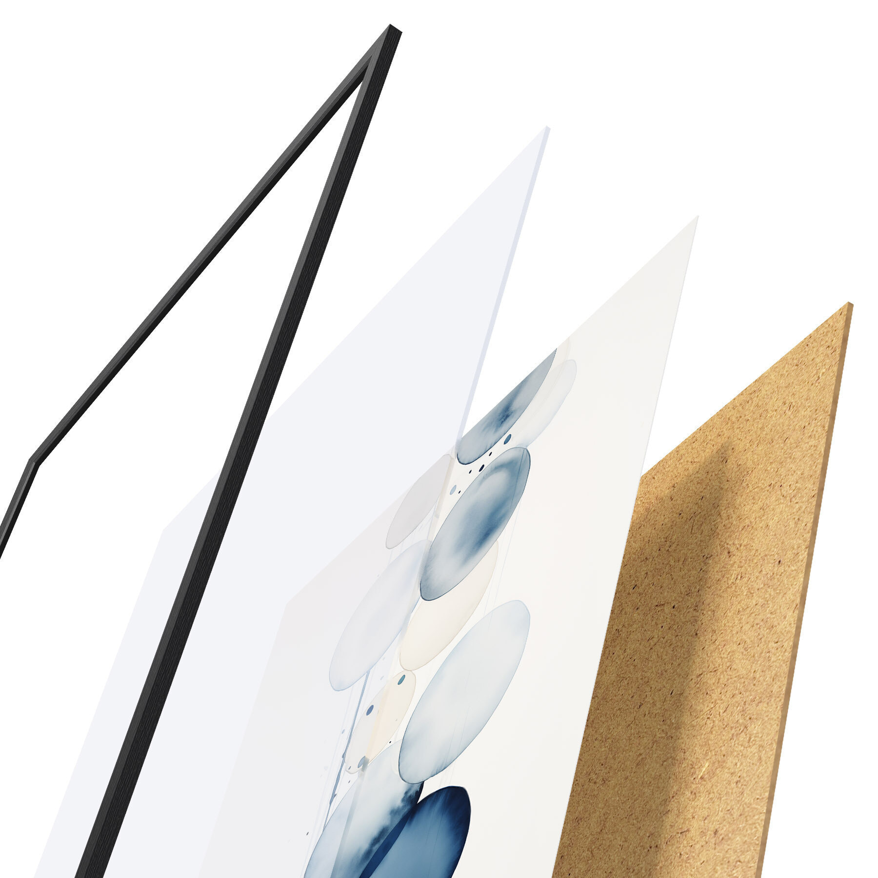 El póster consta de marco, plexiglás, imagen impresa y soporte de aglomerado. El póster puede colgarse inmediatamente en la pared gracias a los soportes de la parte posterior.