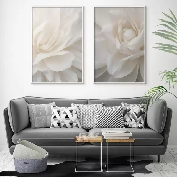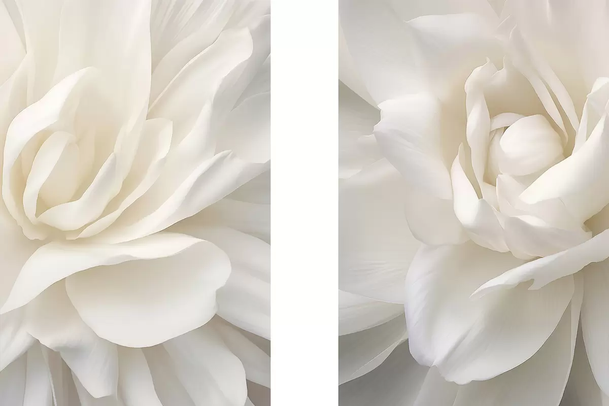 Poster Flor abstracta blanca con pétalos delicados y superpuestos, arte minimalista. d01120