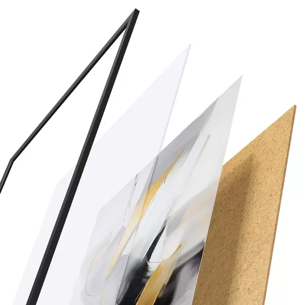El póster consta de marco, plexiglás, imagen impresa y soporte de aglomerado. El póster puede colgarse inmediatamente en la pared gracias a los soportes de la parte posterior.
