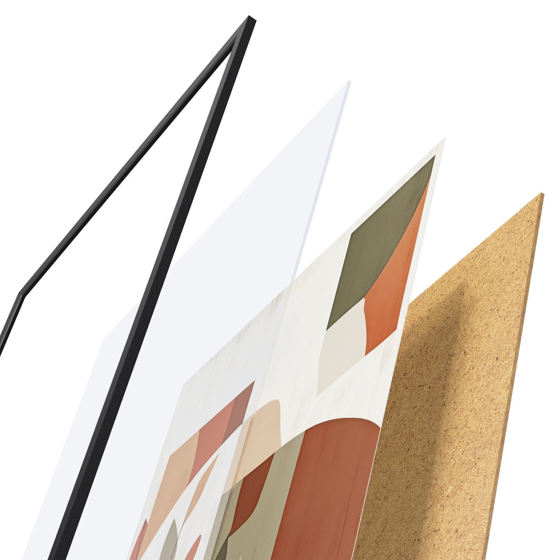 El póster consta de marco, plexiglás, imagen impresa y soporte de aglomerado. El póster puede colgarse inmediatamente en la pared gracias a los soportes de la parte posterior.