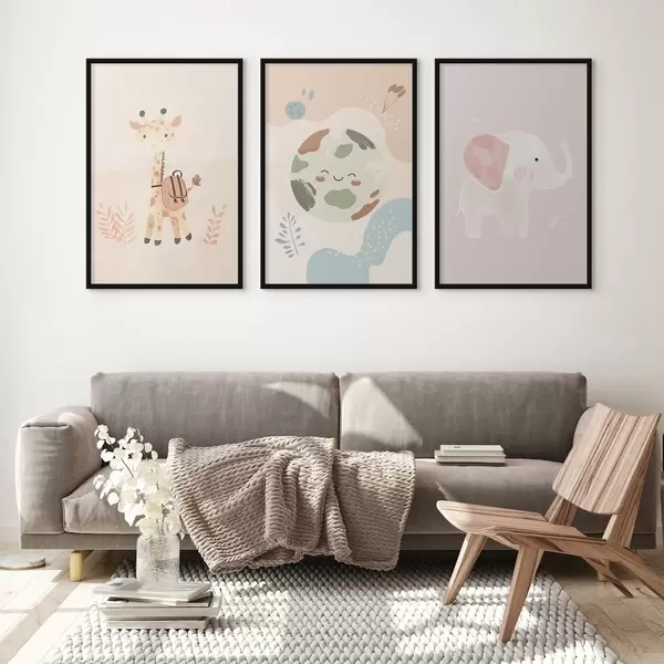 Poster Tierra, jirafa y elefante d01135