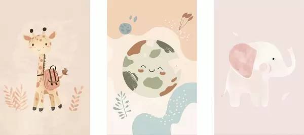 Poster Tierra, jirafa y elefante d01135