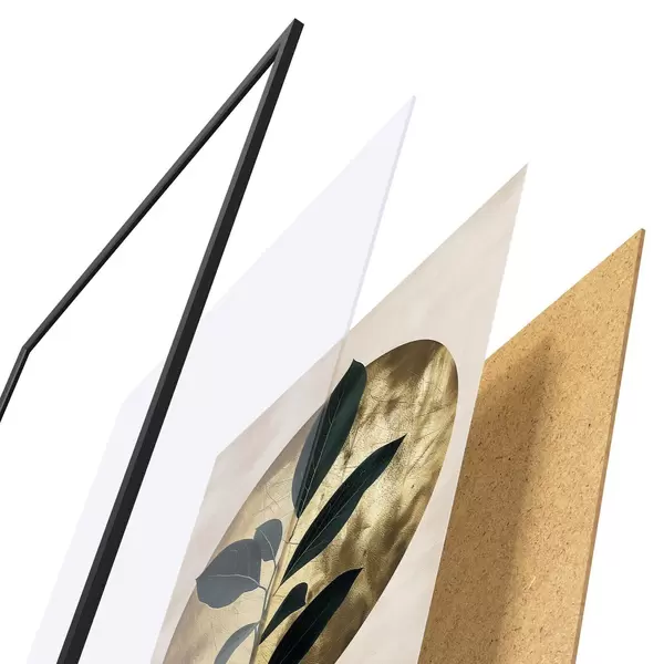 El póster consta de marco, plexiglás, imagen impresa y soporte de aglomerado. El póster puede colgarse inmediatamente en la pared gracias a los soportes de la parte posterior.