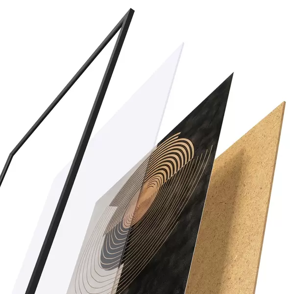 El póster consta de marco, plexiglás, imagen impresa y soporte de aglomerado. El póster puede colgarse inmediatamente en la pared gracias a los soportes de la parte posterior.