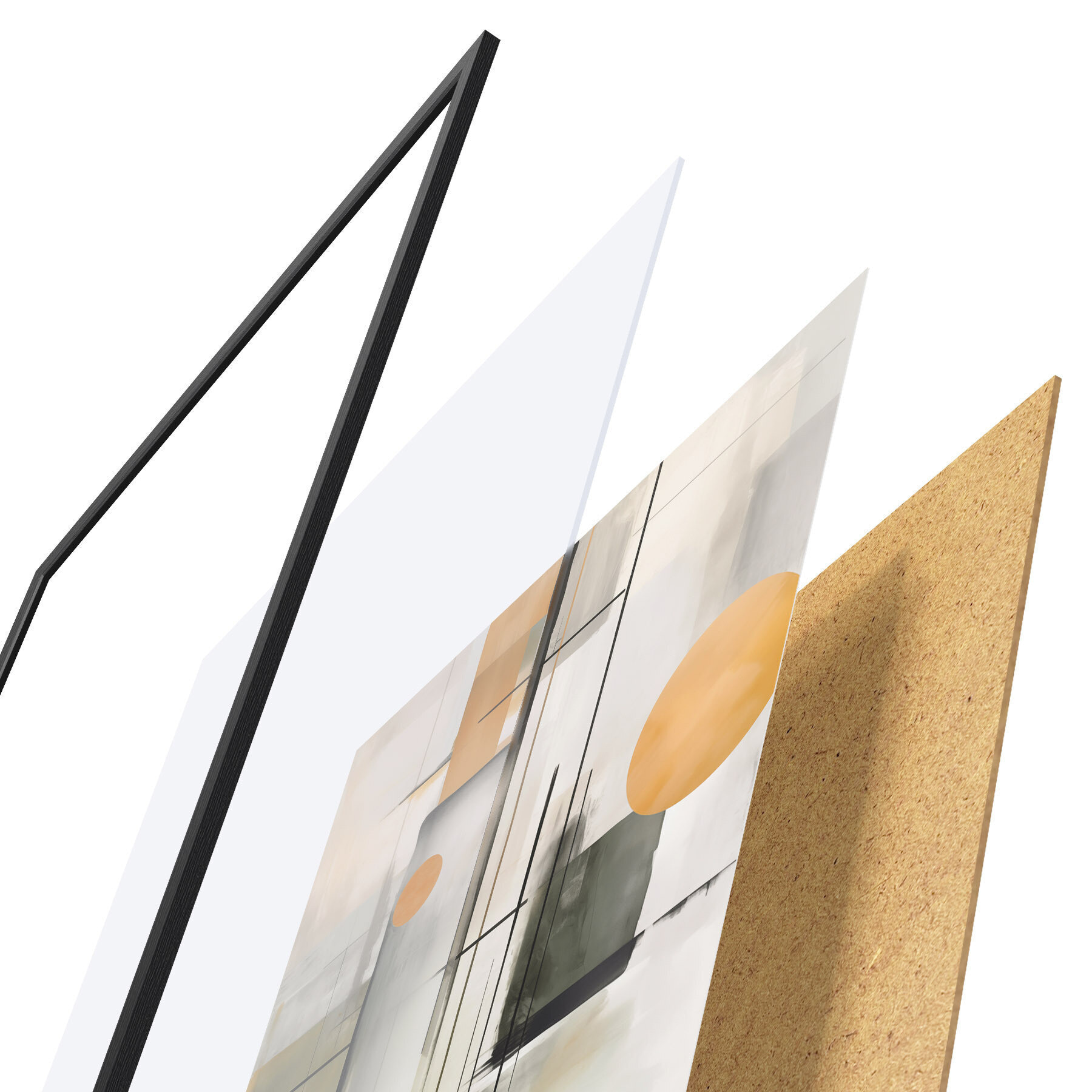 El póster consta de marco, plexiglás, imagen impresa y soporte de aglomerado. El póster puede colgarse inmediatamente en la pared gracias a los soportes de la parte posterior.