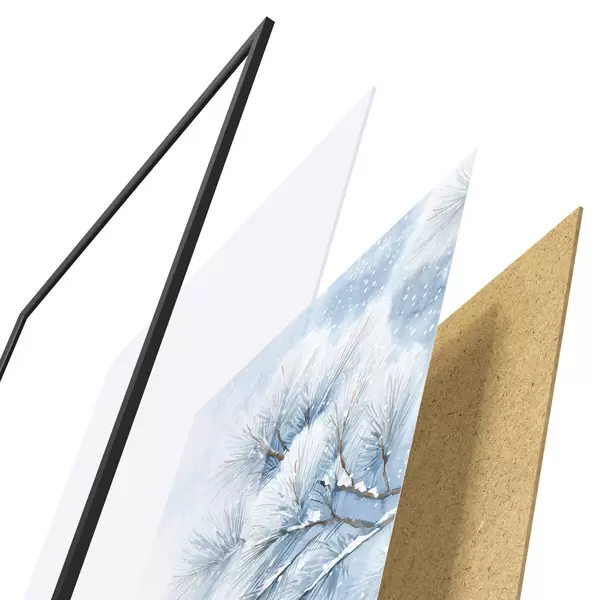 El póster consta de marco, plexiglás, imagen impresa y soporte de aglomerado. El póster puede colgarse inmediatamente en la pared gracias a los soportes de la parte posterior.